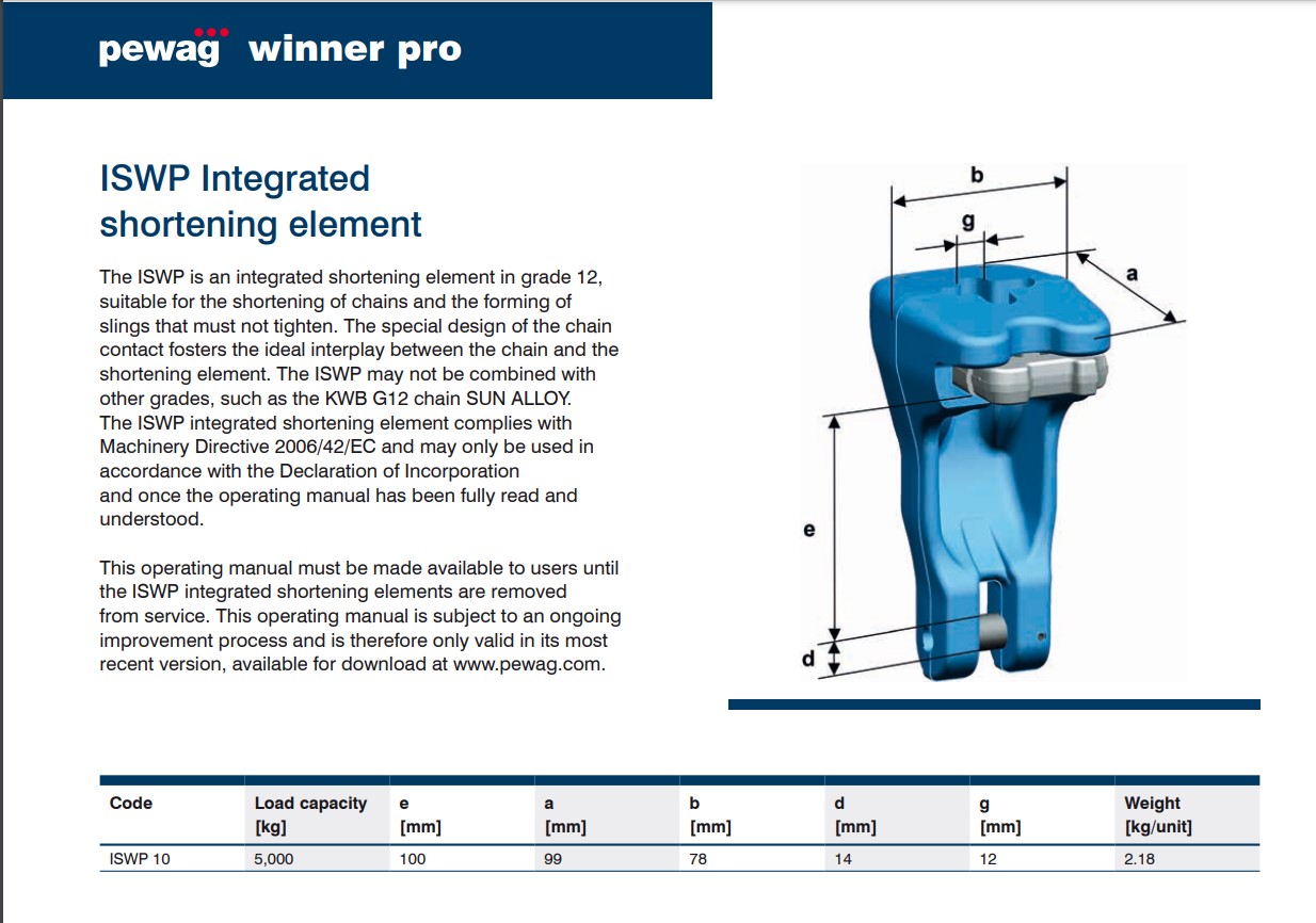 The two-step mechanism protects the shortening element against the accidental release of the chain. An additional stopper on the last chain link prevents the ISWP from getting lost or sliding through the chain sling.