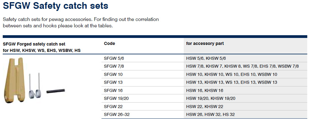 The sets are suitable for pewag winner accessories. Please refer to the tables to determine which set goes with which hook. These safety catch sets are truly in a league of their own – even the tiniest pewag parts offer outstanding quality!