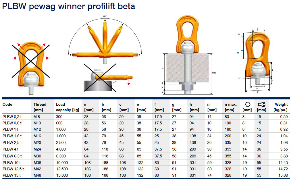 pewag winner profilift beta is available with metric or UNC-thread. The versions with metric thread are also available with customised thread lengths.
