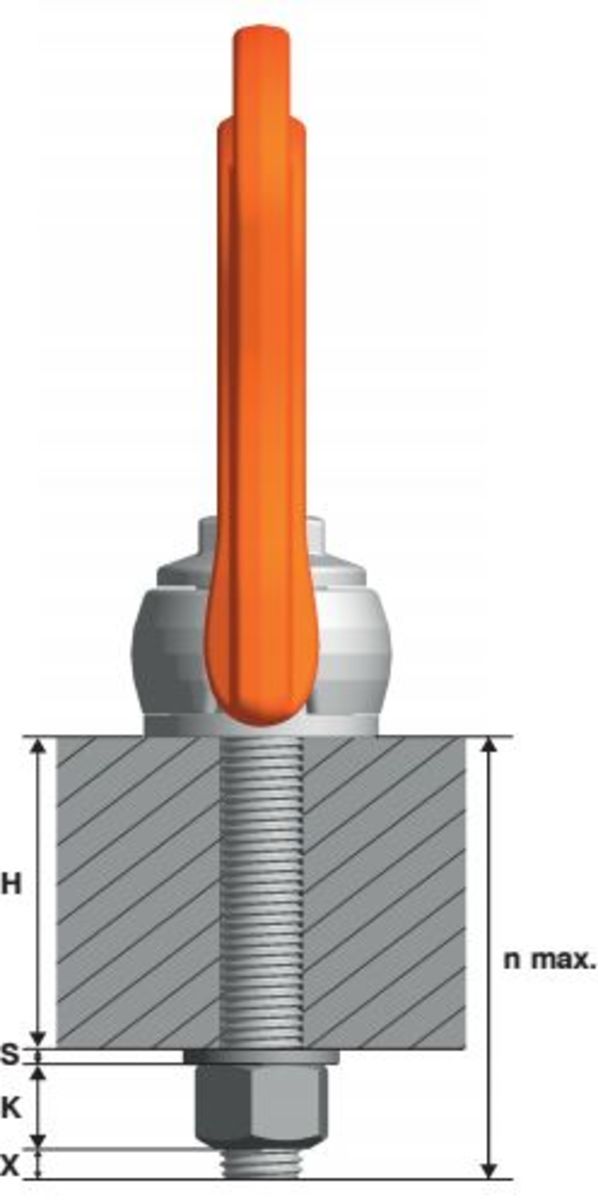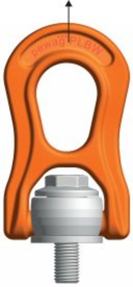 This is another lifting point that is 360° rotatable. The load ring is movable to an angle of 180° and can be positioned at any required angle due to its replaceable and patented spring. In the permitted applications, this lifting point offers five-fold safety.