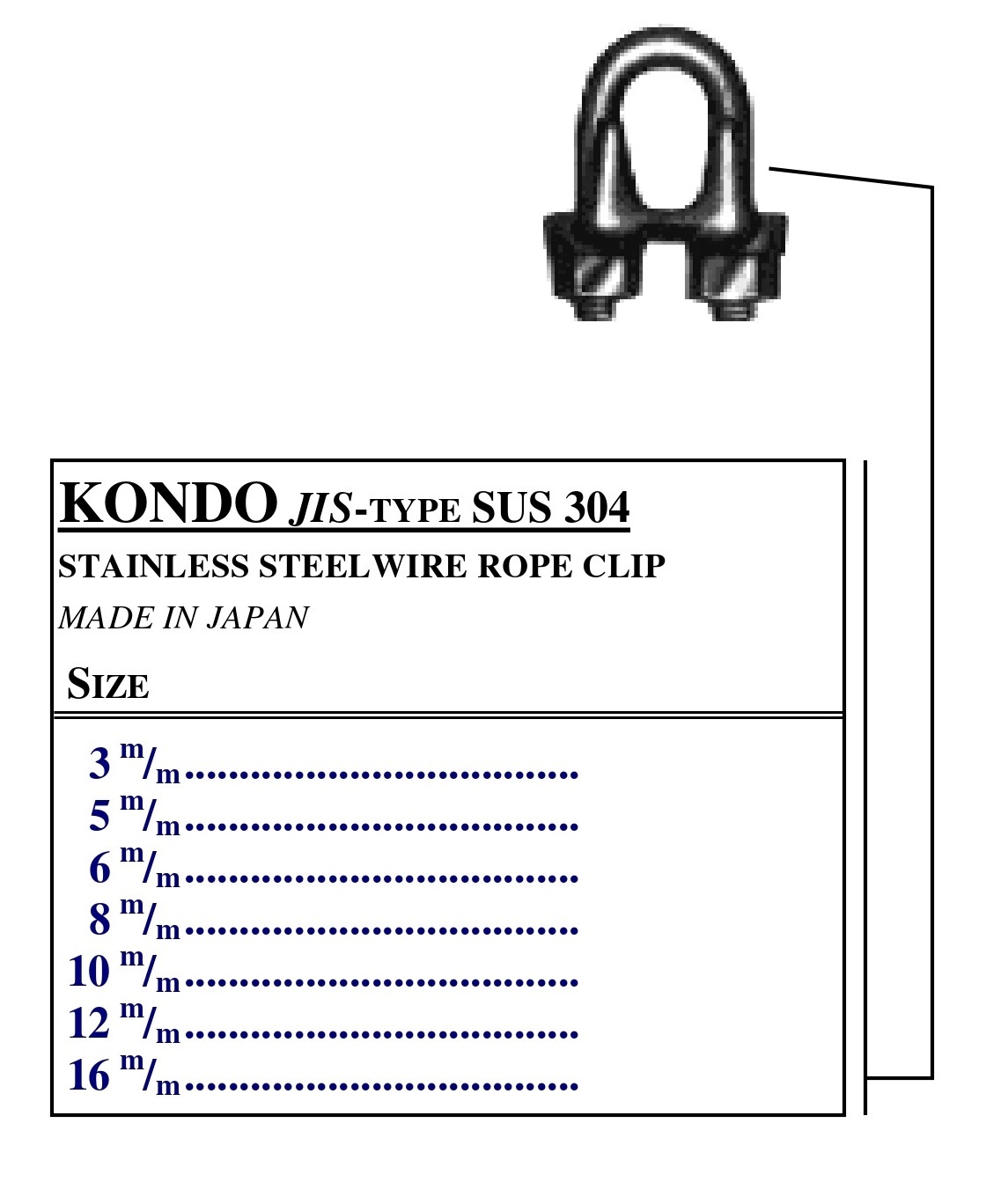 Stainless Steel Wire Clip SUS 304 KONDO JIS