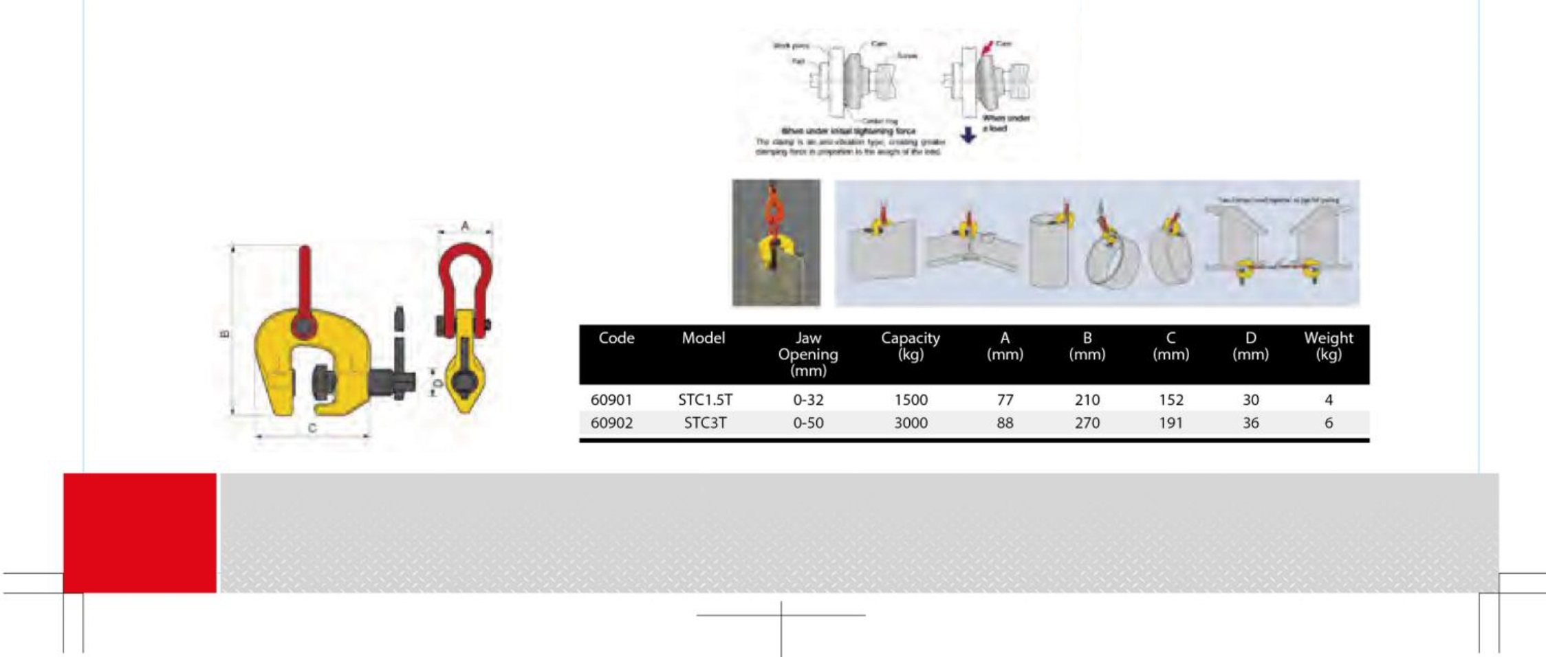 The STC screw clamp is fitted with a moveable cam on the thread spindle which provides a powerful clamping force on the workplace.