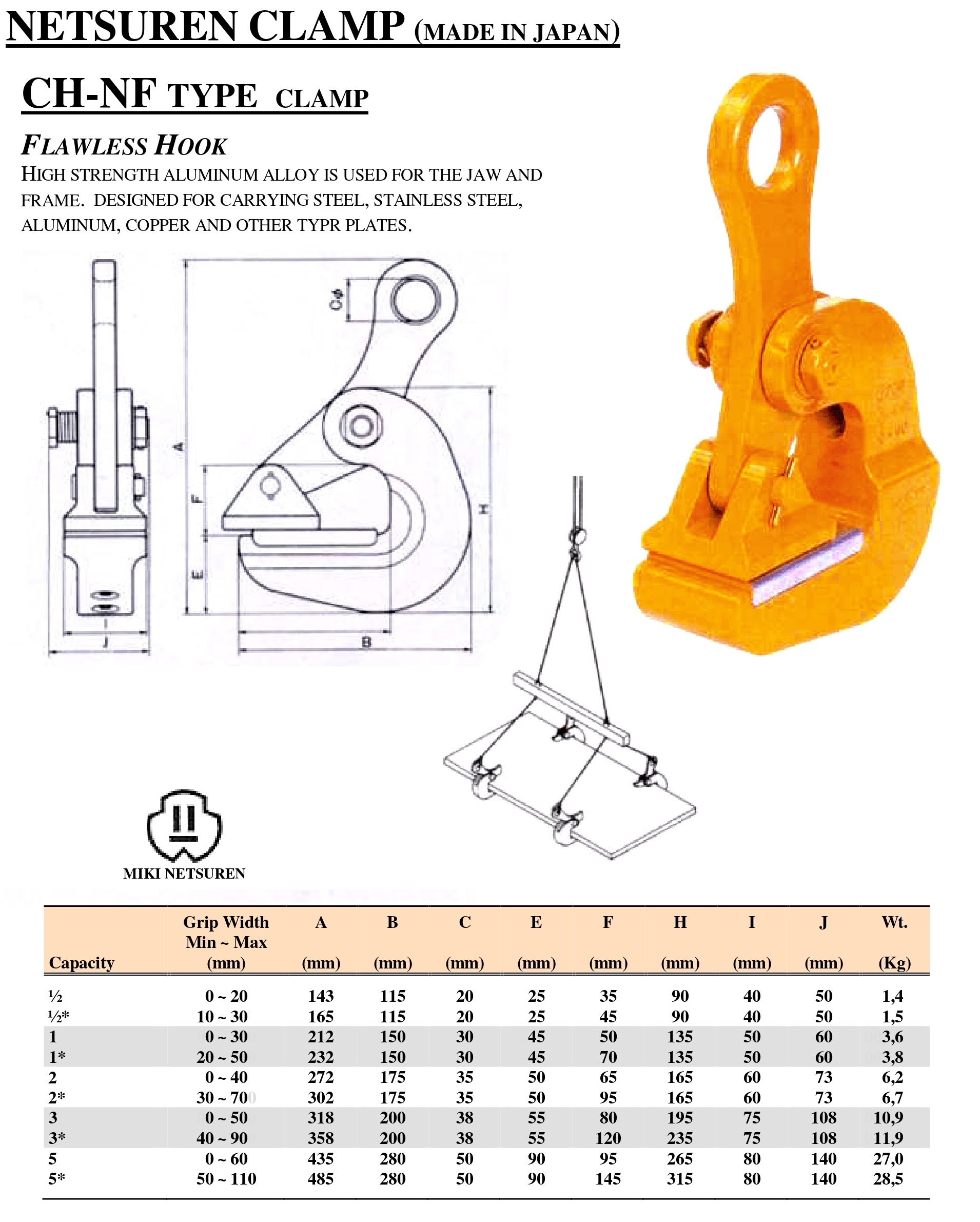 HIGH STREMGTH ALUMINUM ALLOY IS USED FOR THE JAW AND FRAME. DESIGNED FOR CARRYING STEEL, STAINLESS STEEL, ALUMINUM, COPPER AND OTHER TYPR PLATES.