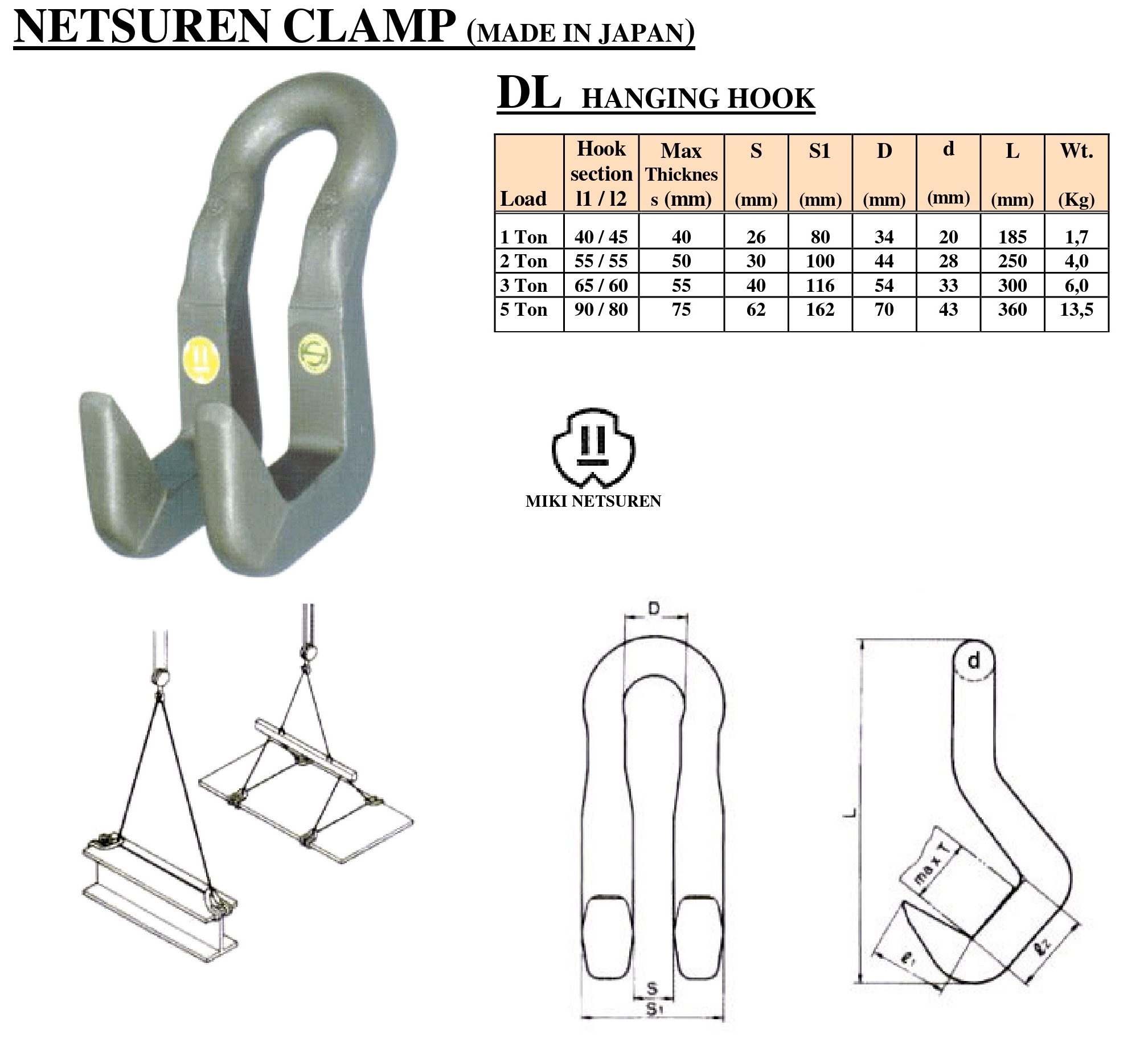 To eliminate metal fatigue and breakage during conventional lifting operations, repeated fatigue tests resembling actual lifting operations have been conducted at the National Research Institute for Metal Materials. This model withstood 2,650,000 repetitions of the test, demonstrating that the clamp has a long life. Furthermore, annealing and other treatments to repair fatigue damage are not needed.