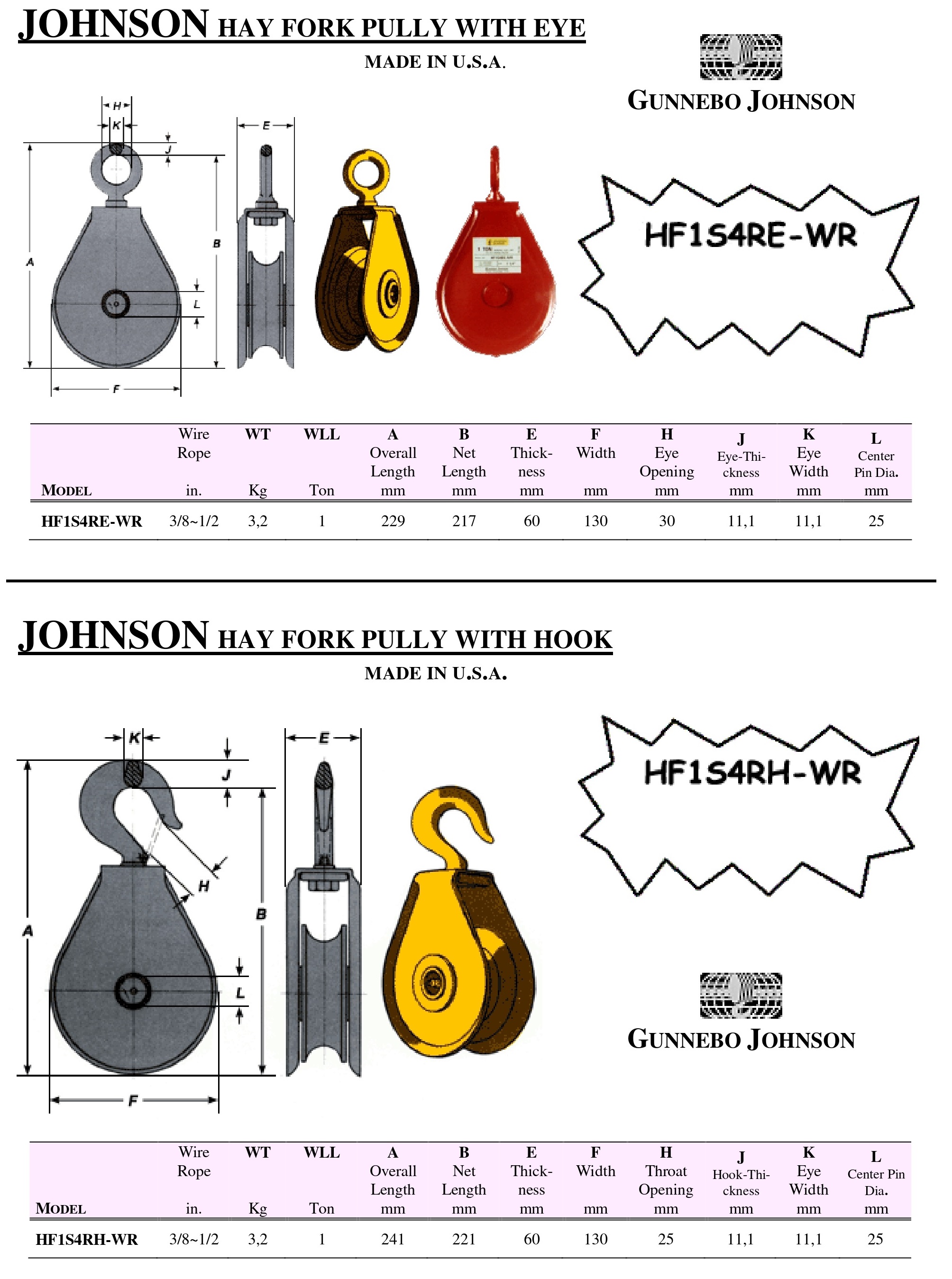 Hay Fork Pulley, 1 Short Ton with Hook / Eye Head