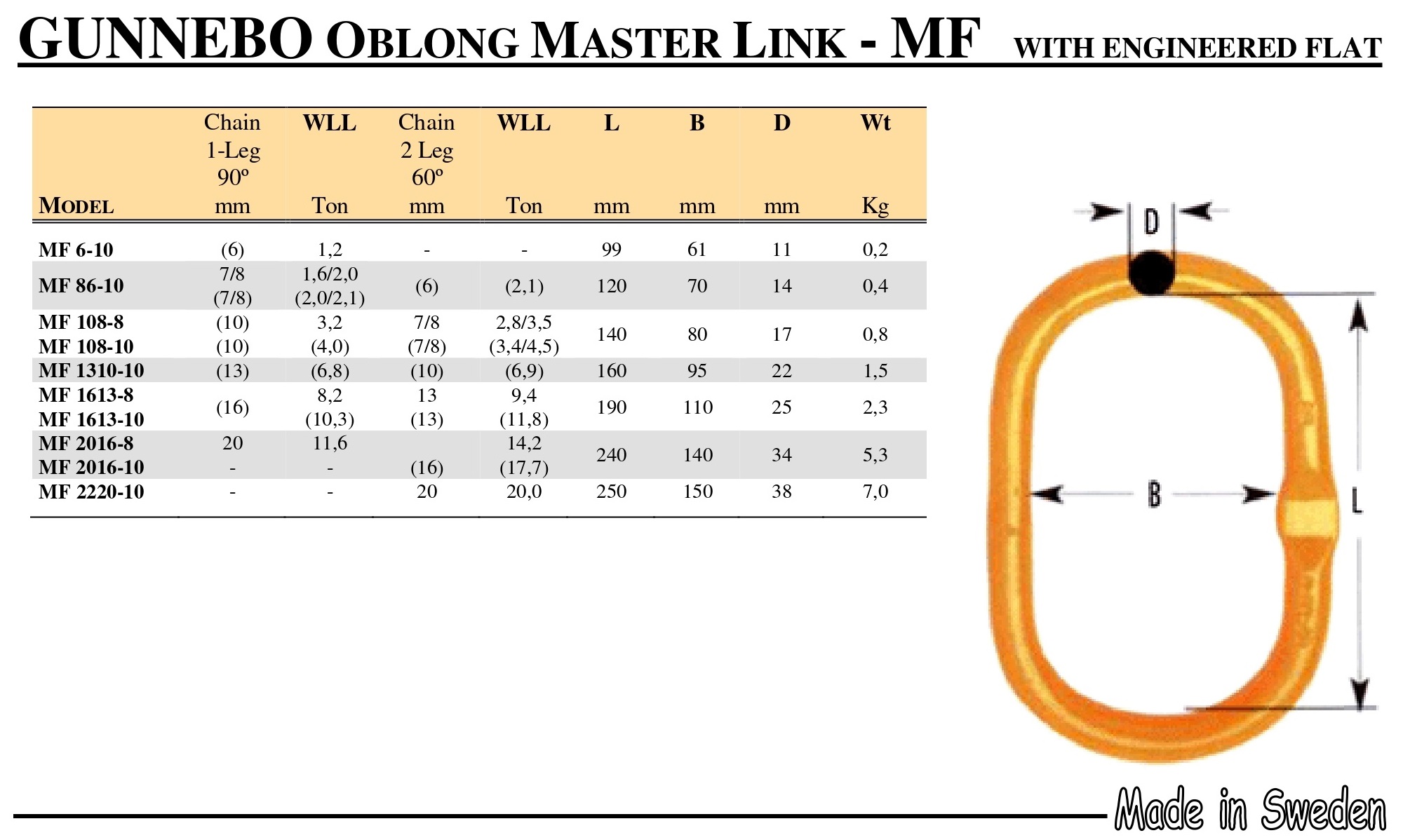 GUNNEBO Oblong Master Link - MF (with engineered flat)