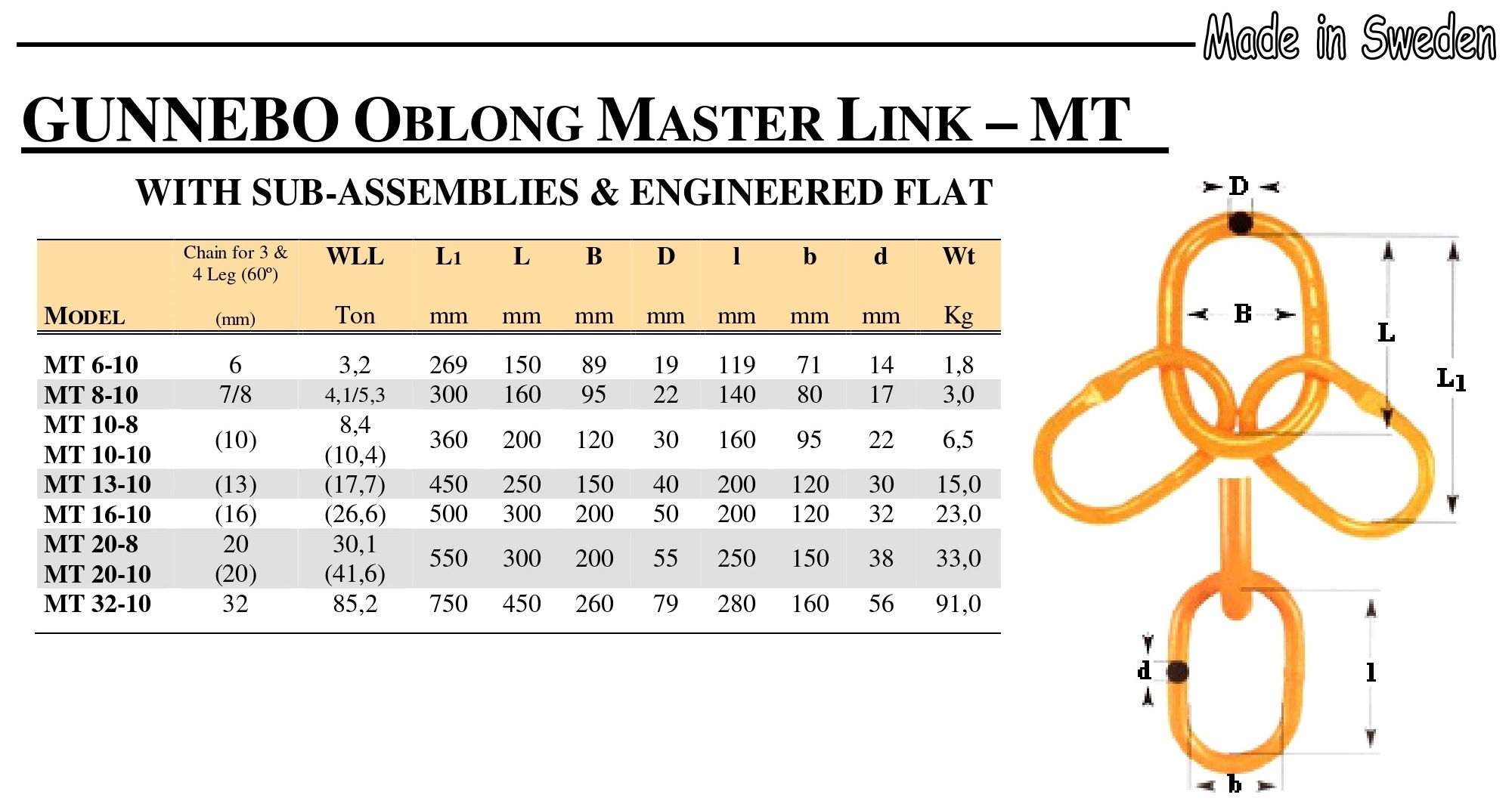 GUNNEBO Oblong Master Link - MT (with sub-assemblies & engineered flat)