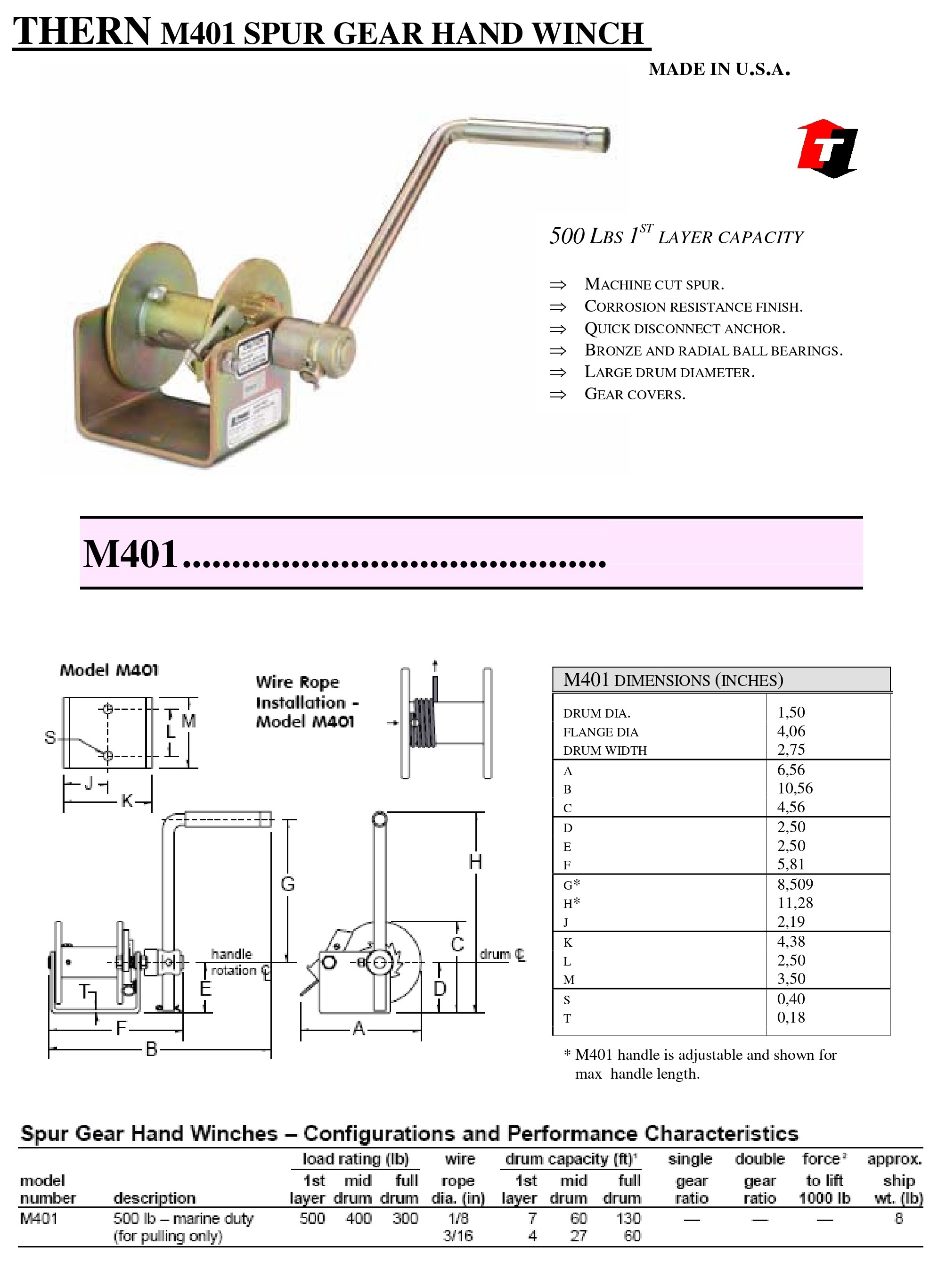 THERN M401 Spur Gear Hand Winch