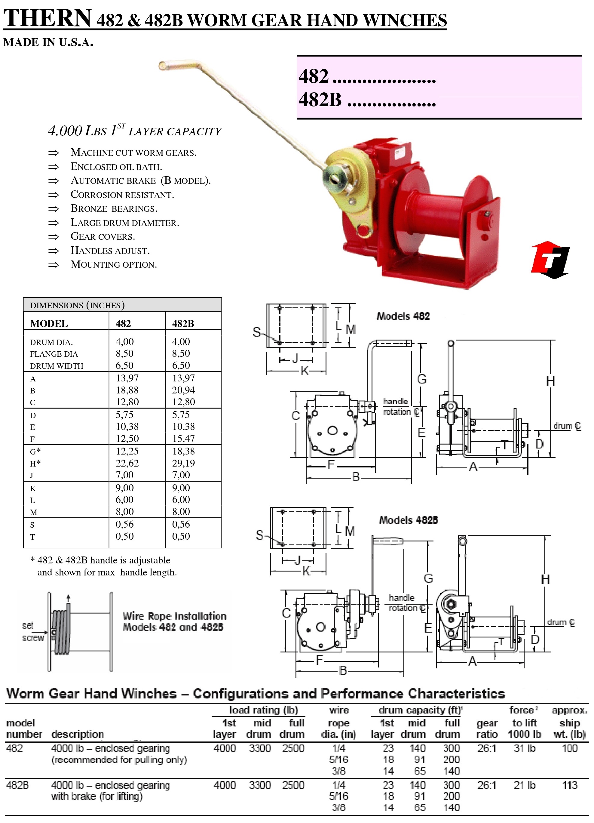 THERN 482 & 482B Worm Hand Winches